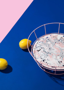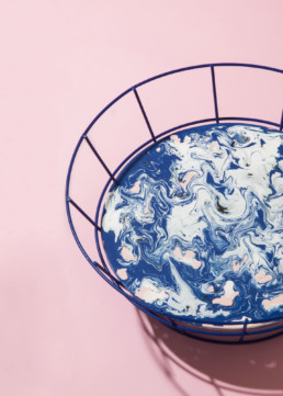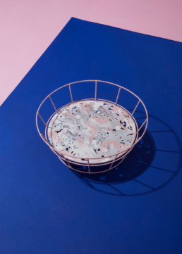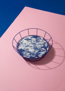 Este Frutero fue desarrollado durante el 2015, año en que empecé a experimentar con la pintura. Usa los dos colores que más se repiten en mi trabajo, rosado y azul.Metal electro pintado y vidrio pintado a mano.(2015)